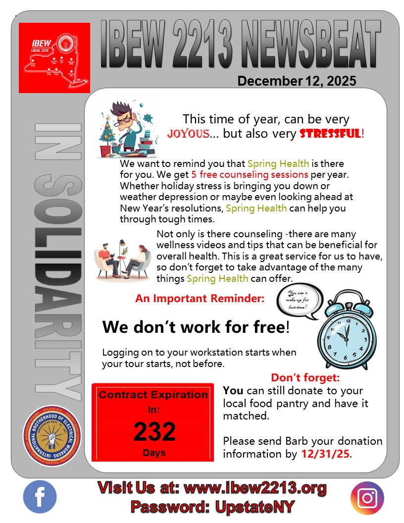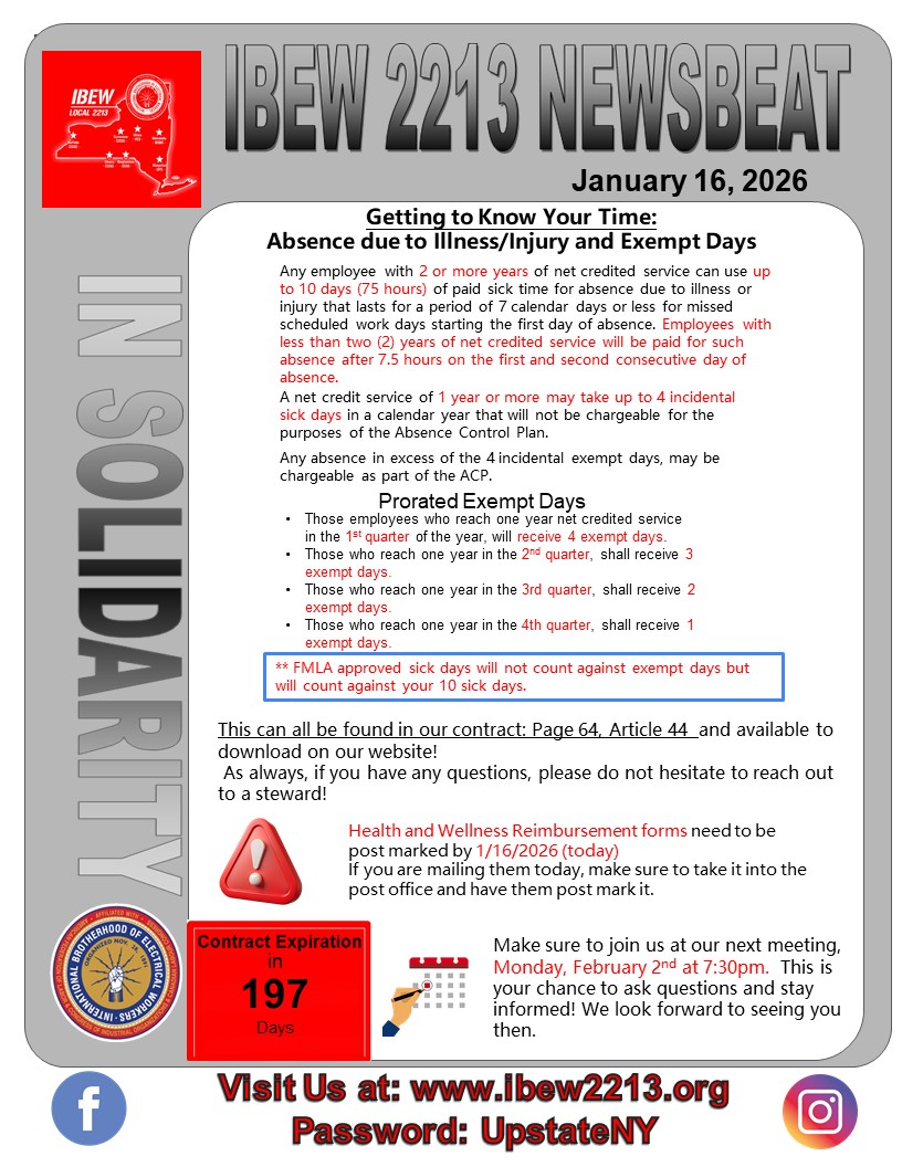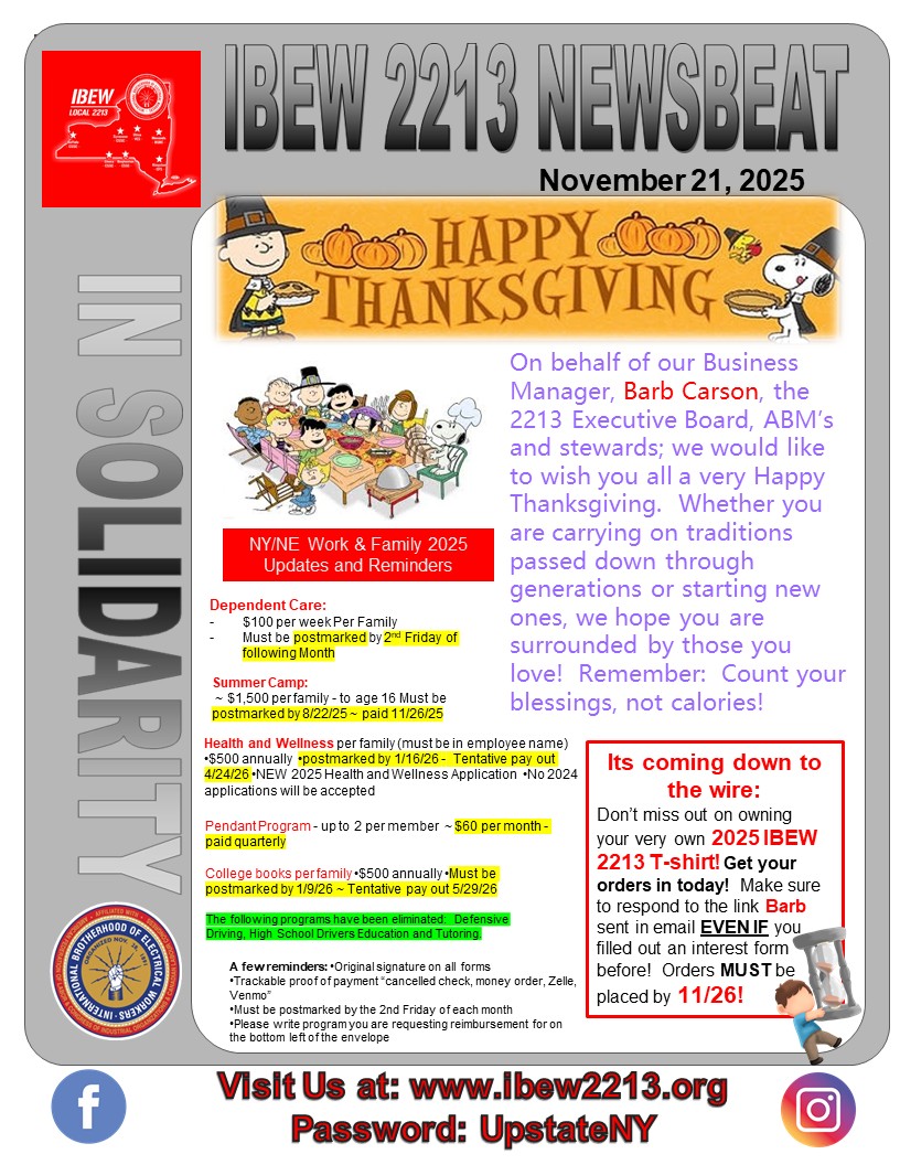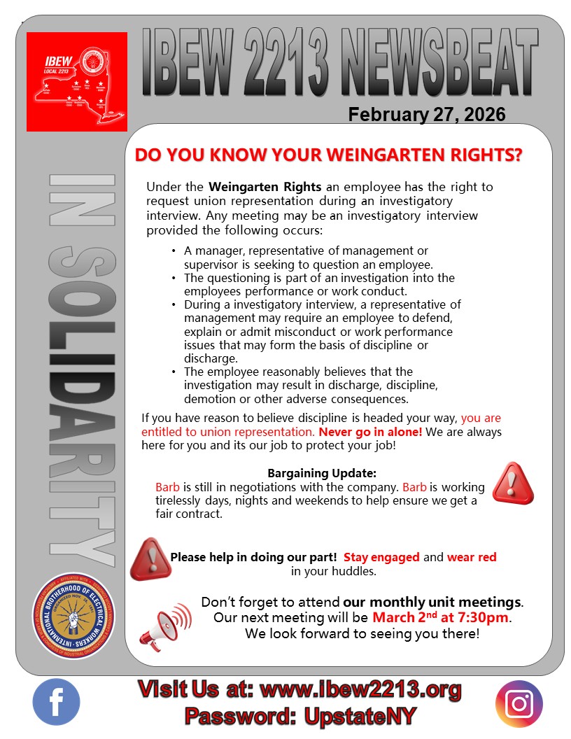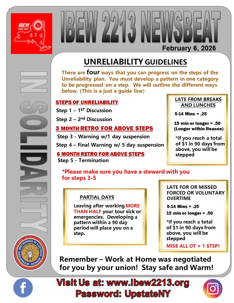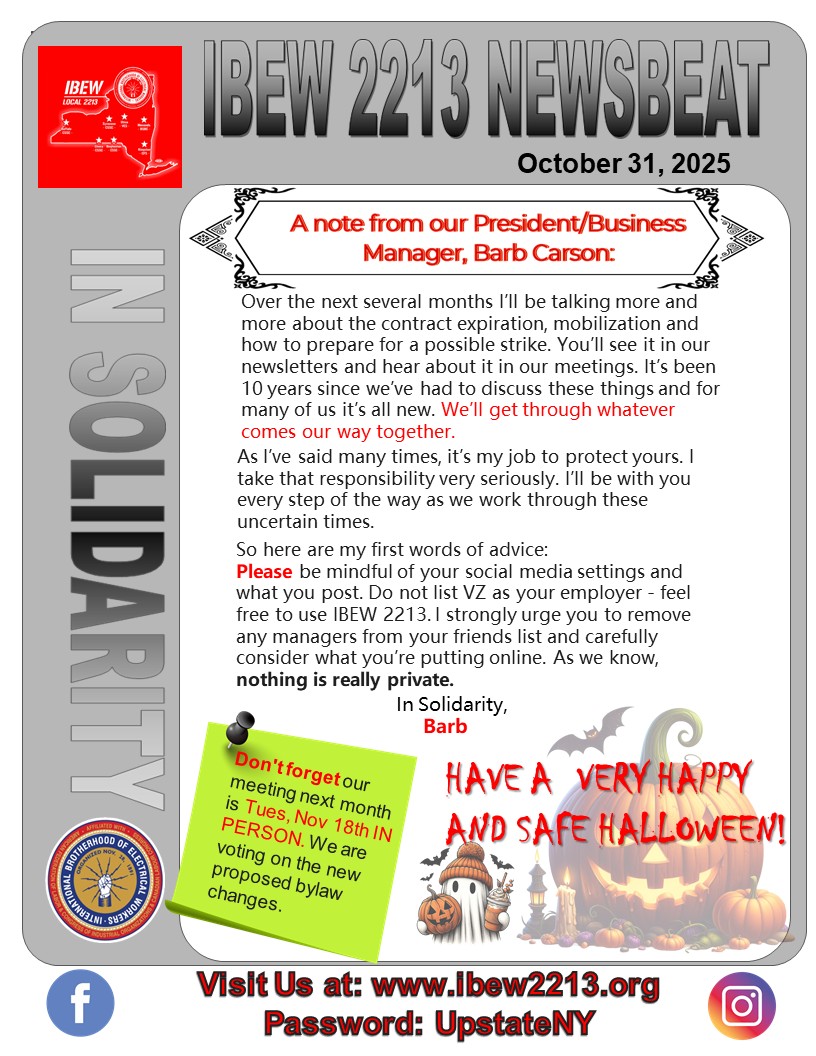 We began as the Telephone Commercial Union Local 2213, formed in July of 1948. After the Alliance of Independent Telephone Unions, in 1949, we began our National bargaining with the Bell System, thus reorganizing in 1975 to become the Telecommunications International Union (TIU). With the divestiture of AT&T, also ended the TIU, driving all of the TIU Affiliates out to seek protection by the AFL-CIO with one of its International Labor Organizations. In 1985, we held an election by secret ballot to affiliate with either CWA or IBEW. The IBEW won and we became IBEW Local 2213 as of December 1, 1985.
